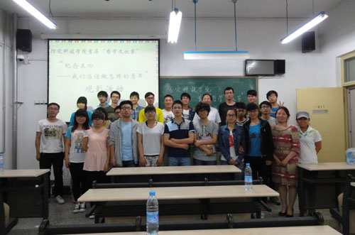 2014年5月13日晚7时,由哲学爱好者之家主办的jinnianhui今年会首届“哲学文化节”活动的第二场——“纪念五四·我们应该做怎样的青年”主题观影活动在南校区5n22教室成功举办。思政部贾作璋老师、哲学爱好者之家指导老师赵元老师出席了活动。